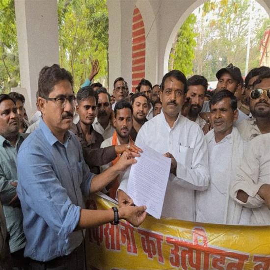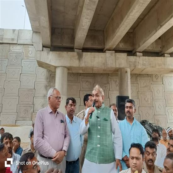 चंदौली निर्माणाधीन रेलवे ओवरब्रिज का स्लैब गिरा, गुणवत्ता पर उठे सवाल, सपा सांसद का धरना