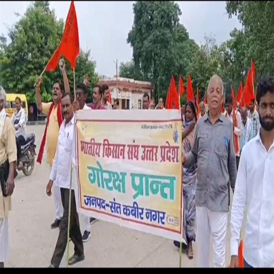खाद, बीज की किल्लत को लेकर भारतीय किसान संघ ने किया प्रदर्शन