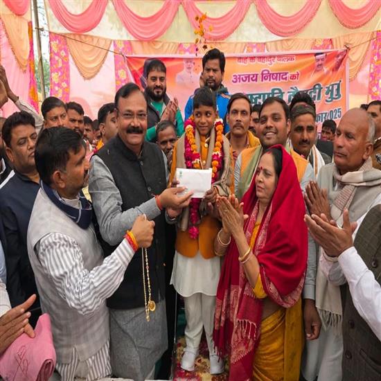 वीरता की मिसाल बने अजयराज निषाद सांसद राजकुमार चाहर ने 51 हजार रुपये की राशि देकर किया सम्मान