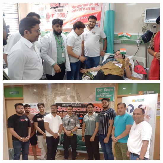 वाराणसी । जय श्री कृष्णा फाउंडेशन एवं फिट- यू जिम द्वारा मिशन सिंदूर के अंतर्गत अपने वीर सपूत, जांबाज सैनिकों, के लिए रक्तदान शिविर दिनांक ग्यारह मई रविवार सुबह नौ बजे से तीन बजे तक आशीर्वाद मल्टी स्पेशलिटी हॉस्पिटल, महमूरगंज में आयोजित किया गया, कुल एक सौ आठ रक्त दाता सैनिकों ने रक्त दान किया।