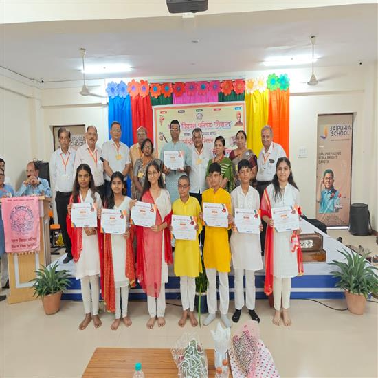 यूपी प्रतापगढ़। भारत विकास परिषद् के विशाल शाखा संस्कार प्रकल्प के तहत सेठ एम. आर. जयपुरिया स्कूल, मकूनपुर में राष्ट्रीय समूहगान प्रतियोगिता आयोजित की गई। प्रतियोगिता में बीएसएस एकेडमी ने प्रथम, सेंट जोसेफ स्कूल ने द्वितीय और संस्कार ग्लोबल स्कूल ने तृतीय स्थान प्राप्त किया। मुख्य अतिथि आरएसएस विभाग प्रचारक ओमप्रकाश और प्रधानाचार्या ऋचा भार्गव ने दीप प्रज्ज्वलित कर कार्यक्रम का उद्घाटन किया। प्रो. पीयूष कांत शर्मा ने परिषद् का परिचय दिया। कक्षा 9 की छात्रा शुभांगी द्विवेदी ने संचालन किया। कार्यक्रम संयोजक उदयभानु सिंह ने संगीतज्ञों का परिचय कराया। इस अवसर पर पुलिस अधीक्षक दीपक भूकर ने उपस्थित होकर प्रतिभागियों को शुभकामनाएं दीं। देखें प्रतापगढ़ से विशाल रावत की ख़ास रिपोर्ट