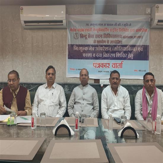वाराणसी । सामाजिक सरोकार और जनसेवा की भावना के तहत नाइक एनर्जी मैन्युफैक्चरिंग प्राइवेट लिमिटेड द्वारा स्वर्गीय मुकुंद लाल अग्रवाल की पावन स्मृति में निःशुल्क नेत्र परीक्षण एवं मोतियाबिंद ऑपरेशन मेगा शिविर (लेन्स प्रत्यारोपण सहित) का आयोजन 15 नवम्बर 2025 को हिन्दू सेवा सदन चिकित्सालय, बॉसफाटक, वाराणसी के सहयोग से किया जा रहा है । इस संदर्भ में सूचना सांझा करने के उद्देश्य से गुरूवार को प्रेस कॉन्फ्रेंस का आयोजन कन्हैलाल स्मृति भवन, रथयात्रा में किया गया, जहां शिविर की विस्तृत जानकारी सांझा की गई। प्रेस वार्ता में आयोजकों ने बताया कि शिविर का उद्देश्य समाज के जरूरतमंद वर्ग को बेहतर नेत्र चिकित्सा सुविधा उपलब्ध कराना है ताकि कोई भी व्यक्ति आर्थिक कारणों से दृष्टिहीनता का शिकार न हो । राजेन्द्र मोहन साह (सचिव, प्रबंध समिति, हिन्दू सेवा सदन चिकित्सालय) ने बताया कि शनिवार, 15 नवम्बर 2025 को प्रातः 9 बजे से दोपहर 2 बजे तक नाइक एनर्जी मैन्युफैक्चरिंग प्रा. लि. के परिसर (प्लॉट नं. 279, गणेशपुर, भेल के सामने, तरना, वाराणसी) में आयोजित होगा । जहां वरिष्ठ नेत्र रोग विशेषज्ञ डॉ. अभिषेक चंद्रा मरीजों की जांच कर योग्य रोगियों का निःशुल्क मोतियाबिंद ऑपरेशन (लेन्स प्रत्यारोपण सहित) करेंगे। साथ ही निःशुल्क चश्मा एवं दवाओं का वितरण भी किया जाएगा । अशोक कुमार गुप्ता (अध्यक्ष, प्रबंध समिति, हिन्दू सेवा सदन चिकित्सालय) ने कहा कि “हमारा उद्देश्य है कि आर्थिक रूप से कमजोर वर्ग को भी गुणवत्तापूर्ण नेत्र चिकित्सा सुविधा मिले । इस शिविर के माध्यम से हम सैकड़ों मरीजों की दृष्टि पुनः लौटाने का प्रयास करेंगे । इस शिविर के माध्यम से हमारा लक्ष्य है कि 100 से अधिक मोतियाबिंद रोगियों का ऑपरेशन किया तथा 200 से अधिक जरूरतमंद लोगों को निःशुल्क चश्मा प्रदान किए जाएं ।” डॉ. अभिषेक चंद्रा (नेत्र रोग विशेषज्ञ) ने कहा कि “मोतियाबिंद आज भी दृष्टिहीनता का प्रमुख कारण है । अगर समय रहते इलाज कर लिया जाए, तो रोगी की दृष्टि पूरी तरह वापस लाई जा सकती है । यह शिविर समाज के जरूरतमंदों के लिए अत्यंत उपयोगी सिद्ध होगा ।” भानू अग्रवाल (संस्थापक, नाइक एनर्जी मैन्युफैक्चरिंग प्रा. लि.) ने कहा कि “यह शिविर स्व. मुकुंद लाल अग्रवाल जी की स्मृति को समर्पित है । उन्होंने सदैव समाज सेवा को प्राथमिकता दी और उसी प्रेरणा से यह आयोजन किया जा रहा है।” उन्होने कहा कि शहर का पुराने चिकित्सा संस्थानों में एक हिन्दू सेवा सदन चिकित्सालय सदैव आर्थिक रूप से कमजोर और जरूरतमंद लोगों के लिए तत्वर रहता है, इसी लिये स्व. मुकुंद लाल अग्रवाल की स्मृति में आयोजित निःशुल्क मोतियाबिंद ऑपरेशन मेगा शिविर के लिए हिन्दू सेवा सदन चिकित्सालय को सहभागी बनाया है । इस द