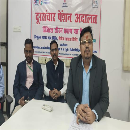वाराणसी । प्रधानमंत्री के संकल्प प्रशासन आपके द्वार के तहत कार्यालय नियंत्रक संचारलेखा, उत्तर प्रदेश (पूर्व) के उप कार्यालय, सीटीओ, कैन्ट वाराणसी के प्रांगण में कार्मिक, लोक शिकायत तथा पेंशन मंत्रालय, के राष्ट्रव्यापी डिजिटल जीवन प्रमाण पत्र अभियान 4.0' के तहत एक 'पेंशन अदालत' एवं 'जीवन प्रमाण पत्र शिविर' का आयोजन किया गया जिसकी अध्यक्षता मनीष कुमार गुप्ता, नियंत्रक संचारलेखा, उत्तर प्रदेश पूर्व, विकास खंड, गोमती नगर, लखनऊ द्वारा की गई। कार्यक्रम का शुभारम्भ दीप प्रज्वलन के साथ किया गया एवं संविधान दिवस होने के नाते सभी ने भारतीय संविधान की प्रस्तावना का उच्चारण किया एवं उसके अनुपालन एवं संरक्षण की शपथ ली। नियंत्रक ने सभी अतिथियों को सम्प्रति भारतीय संविधान की प्रतियाँ समर्पित कर उनका स्वागत किया।कार्यक्रम में नियंत्रक महोदय ने अस्सी वर्ष से अधिक उम्र के पेंशनधारकों को उनके द्वारा की गयी राष्ट्रसेवा को दृष्टिगत रखते हुए उनका माल्यार्पण से स्वागत एवं सम्मानित किया गया।इस शिविर में दूरसंचार पेंशनभोगियों हेतु 'निःशुल्क स्वास्थ्य जांच शिविर' का आयोजन ए एस जी अस्पताल, शिवपुरवा वाराणसी के सहयोग से किया गया, जिसमे कुछ प्रमुख स्वास्थ्य जांच के साथ-साथ वृद्धावस्था में निरोगी रहने के उपायों पर चर्चा की गई। पेंशनरों की 'वित्तीय साक्षरता हेतु 'पंजाब नैशनल बैंक' एवं 'भारतीय डाक विभाग, वाराणसी' के सहयोग से एक जागरुकता सत्र का आयोजन किया गया जिसमे उन्हें डिजिटल माध्यम से किये गये वित्तीय लेनदेन में बरती जाने वाली सावधानियों एवं साइबर सुरक्षा से भी अवगत कराया गया। इस अवसर पर नियंत्रक मनीष कुमार गुप्ता ने सभी को एक-एक पेड़ प्रदान करते हुए "एक पेड़ मर्मों के नाम कार्यक्रम की महत्ता पर जोर दिया एवं इन पेड़ों को प्रकृति माँ को समर्पित करते हुए अपने वातावरण को स्वच्छ एवं निर्मल बनाने का आह्वान किया।