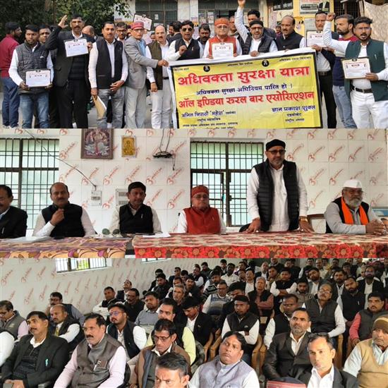 फास्ट न्यूज इंडिया यूपी गौरीगंज/अमेठी। अधिवक्ता सुरक्षा अधिनियम को लेकर वकीलों की आवाज गुरूवार को यहां बुलन्द दिखी। विधेयक के समर्थन में निकली प्रदेशव्यापी अधिवक्ता सुरक्षा यात्रा लखनऊ से गौरीगंज तथा अमेठी पहुंचने पर अधिवक्ताओं को जोश में देखा गया। आल इण्डिया रूरल बार एसोसिएसन के बैनरतले प्रदर्शन कर अधिवक्ताओं ने संसद के आगामी सत्र में विधेयक पास कराए जाने की मांग को लेकर यहां वकीलों ने एकजुटता का ऐलान किया। आल इण्डिया रूरल बार एसोसिएसन के राष्ट्रीय अध्यक्ष ज्ञानप्रकाश शुक्ल एवं राष्ट्रीय महासचिव अनिल कुमार तिवारी महेश की संयुक्त अगुवाई में अधिवक्ताओं ने मौलिक अधिकारों के तहत समानता के अधिकार व सुरक्षा विधेयक को लेकर संघर्ष का बिगुल बजाया। अधिवक्ता सुरक्षा अधिनियम को लेकर परिसर में वकीलों ने नारेबाजी भी की। वहीं परिसर में विधेयक के मसौदे को लेकर जागरूकता अभियान भी चलाया गया। गौरीगंज स्थित जिला बार एसोसिएसन के सभागार में अधिवक्ताओं की आमसभा को संबोधित करते हुए एसोसिएसन के राष्ट्रीय अध्यक्ष ज्ञानप्रकाश शुक्ल ने कहा कि संविधान में समानता का अधिकार अधिवक्ताओं की सुरक्षा को लेकर सर्वाेच्च प्राथमिकता प्रदान करता है। उन्होने कहा कि सरकारें वकीलों की सुरक्षा व सुविधा को लेकर कतई ध्यान नही दे रही हैं। राष्ट्रीय अध्यक्ष ज्ञानप्रकाश ने कहा कि यदि संसद के आगामी शीतकालीन सत्र में अधिवक्ता सुरक्षा को लेकर विधेयक पेश नही किया जाता तब वकील संसद भवन के सामने घेराव व प्रदर्शन करेंगे। एसोसिएसन के राष्ट्रीय महासचिव अनिल कुमार तिवारी महेश ने कहा कि अधिवक्ता सुरक्षा अधिनियम के जरिये देश में अन्याय के खिलाफ न्याय के संघर्ष को मजबूती मिलेगी। कार्यक्रम की अध्यक्षता जिला बार एसोसिएसन के अध्यक्ष महेशचंद्र शुक्ल व संचालन पूर्व अध्यक्ष केवल प्रसाद शुक्ल ने किया। संयोजन पूर्व अध्यक्ष राजकरन तिवारी व महामंत्री शशिलेश शुक्ल ने किया। इस मौके पर रमाशंकर त्रिपाठी, प्रमोद तिवारी, शिवशंकर शुक्ल, उमाशंकर पाण्डेय, दिनेश सिंह, उमाशंकर मिश्र, श्रीराम सरोज, राकेश शुक्ल आदि अधिवक्ता रहे। रिपोर्ट विशाल रावत 151019049