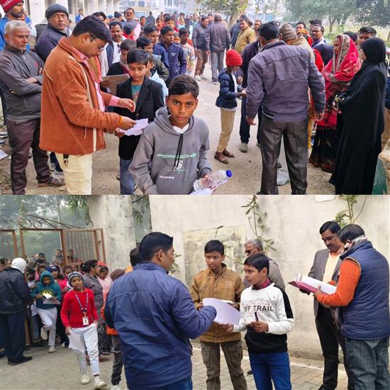 सांगीपुर में परीक्षार्थियों के प्रवेश पत्र की जांच करते शिक्षक