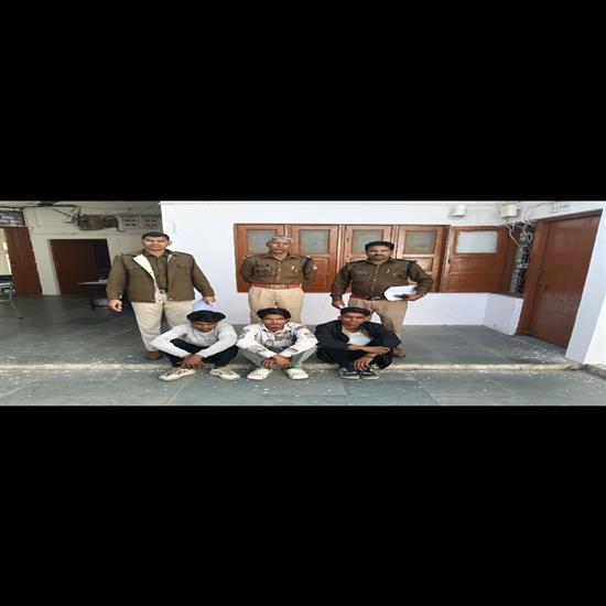 दिनांक 26.09.2025 को फरियादी विवेक पिता नरेन्द्र सिरसवाल उम्र 22 साल निवासी ठक्कर बाबा कालोनी बडनगर ने रिपोर्ट किया कि दिनांक 25.09.25 के रात करीबन 10.15 बजे की सरस्वती स्कूल के पास बदनावर रोड पर एक मोटर साईकल पर आये तीन लडके एवं अन्य दो नाबालिक लडके निवासीगण शक्कर मील बडनगर व्दारा रास्ते मे रोक कर नकली पिस्टल दिखाकर डरा धमका कर हप्ता वसुली एवं शराब पीने के लिये पैसे की मांग की गई । रिपोर्ट पर अपराध क्रमांक 610/25 धारा 308(5),115(2),3(5) बीएनएस का पंजीबंद्ध कर विवेचना मे लिया गया प्रकरण की विवेचना के दौरान प्रकरण की गंभीरता को देखते हुए थाना प्रभारी निरीक्षक अशोक पाटीदार व्दारा टीम गठीत कर आरोपीगणों की धरपकड हेतु लगातार प्रयास किये गये जगह जगह दबीश दी गई इसी बीच मुखबिर की सूचना पर आज दिनांक 22.12.2025 को प्रकरण के तीन आरोपी 1. विष्णु पिता भुवान सिंह भुरिया जाति भील उम्र 18 साल 8 माह निवासी शक्कर मील बडनगर, 2 भारत पिता निर्भय सिंह राठोर जाति राजपुत उम्र 19 साल निवासी शक्कर मील बडनगर , 3 रितीक पिता मदन भूरिया जाति भील उम्र 19 साल निवासी शक्कर मील बडनगर को कोर्ट चौराहा बडनगर से गिरफतार किया गया एवं आरोपी भारत से घटना में प्रयुक्त मोटर सायकल एमपी 13 जेडएफ 0287 जप्त की गई। आरोपियों को माननीय न्यायालय बडनगर पेश किया गया । प्रकरण के अन्य दो बाल अपचारी फरार है जिनकी तलाश जारी है जिनसे नकली पिस्टल भी जप्त किया जाना है।