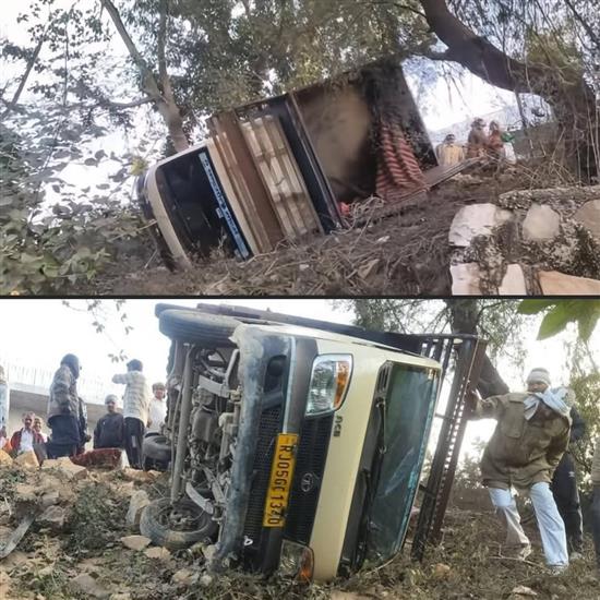 भरतपुर जिले के बयाना क्षेत्र में बयाना-भरतपुर स्टेट हाईवे पर सालाबाद रेलवे फाटक के पास एक लोडिंग टैंपो अनियंत्रित होकर डिवाइडर से टकराकर पलट गया। हादसे में महिलाओं और बच्चों सहित करीब 20 लोग बाल-बाल बच गए, हालांकि कुछ को मामूली चोटें आ गई। ग्रामीणों के अनुसार टैंपो चालक शराब के नशे में था और तेज रफ्तार के कारण वाहन बेकाबू हो गया। टैंपो में मलाह (भरतपुर) निवासी एक ही परिवार के लोग सवार थे, जो बयाना के बमनपुरा मोहल्ले में एक पारिवारिक कार्यक्रम में शामिल होकर वापस घर लौट रहे थे। प्राप्त जानकारी अनुसार ग्रामीणों द्वारा घायल सवारियों को टेम्पो से बाहर निकालने सहित नशे में धुत्त टेम्पो चालक की भी पिटाई भी करदी, जिसके बाद वह मौका पाकर वहां से फरार हो गया। पुलिस द्वारा टैंपो को जब्त करने सहित चालक की तलाश शुरू करदी गई है। आकाश शर्मा रुदावल 151186544
