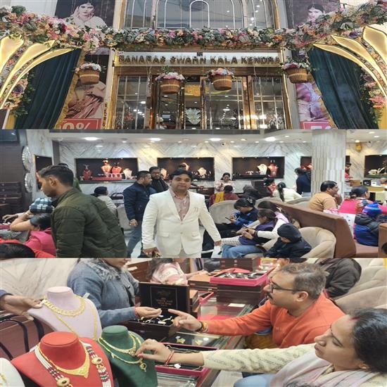 वाराणसी । श्री बनारस स्वर्ण कला केंद्र शादी घर महमूरगंज मे ग्राहकों की भारी भीड़ को देखते हुए शोरूम के अधिष्ठाता प्रिंस जायसवाल ने काशी वासियों के लिए सोने, चांदी की ज्वेलरी पर 3.5% से 5% तक मेकिंग चार्ज ऑफर को 5 जनवरी से बढ़ाकर अब 15 जनवरी तक कर दिया है। साथ ही हीरे के ज्वैलरी में बनवाई पर 100% मेकिंग चार्ज में छूट दी जा रही है। शोरूम के अधिष्ठाता प्रिंस जायसवाल ने काशी वासियो से विशेष अपील की है कि वह अपने परिवार सगे संबंधियों के साथ शोरूम पर आकर किसी भी ज्वेलरी की बनवाई पर सिर्फ 3.5% से 5% तक चल रहे मेकिंग चार्ज का लाभ उठाएं । देखे वाराणसी से रविन्द्र गुप्ता की रिपोट