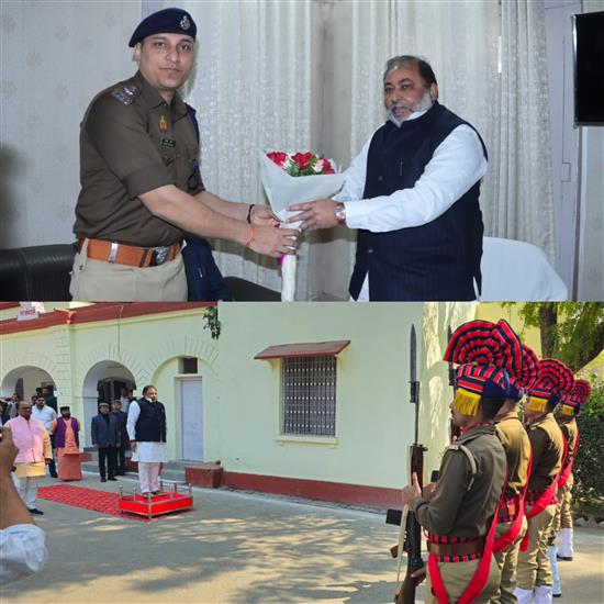 फ़ास्ट न्यूज़ इंडिया यूपी प्रतापगढ़। उत्तर प्रदेश सरकार के राज्य परिवहन मंत्री दयाशंकर सिंह जी के जनपद प्रतापगढ़ आगमन पर पीडब्ल्यूडी गेस्ट हाउस में उनका औपचारिक स्वागत एवं सम्मान किया गया। मंत्री जी के आगमन पर जिलाधिकारी प्रतापगढ़ शिव सहाय अवस्थी एवं पुलिस अधीक्षक प्रतापगढ़ दीपक भूकर द्वारा पुष्पगुच्छ भेंट कर उनका आत्मीय स्वागत एवं अभिनंदन किया गया। इस अवसर पर पुलिस लाइन से आए दल द्वारा पारंपरिक सम्मान स्वरूप गार्ड ऑफ ऑनर (सलामी) प्रस्तुत की गई। कार्यक्रम के दौरान प्रशासन एवं पुलिस विभाग के वरिष्ठ अधिकारियों द्वारा जनपद में संचालित विभिन्न विकासात्मक एवं विभागीय योजनाओं एवं कार्यक्रमों का संक्षिप्त प्रस्तुतीकरण माननीय मंत्री जी के समक्ष किया गया। रिपोर्ट विशाल रावत 151019049