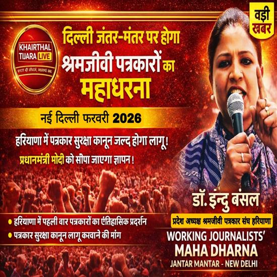 महाधरने को सफल बनाने के लिए श्रमजीवी पत्रकार संघ हरियाणा की सभी जिला इकाइयों से अपील की गई है कि वे अपने-अपने जिले से शामिल होने वाले श्रमजीवी पत्रकारों की संख्या संघ के व्हाट्सएप नंबर 8675308030 व 9896308030 पर शीघ्र भेजें, ताकि सरकार व प्रशासन को पत्रकारों के वास्तविक संख्या बल से अवगत कराया जा सके।
