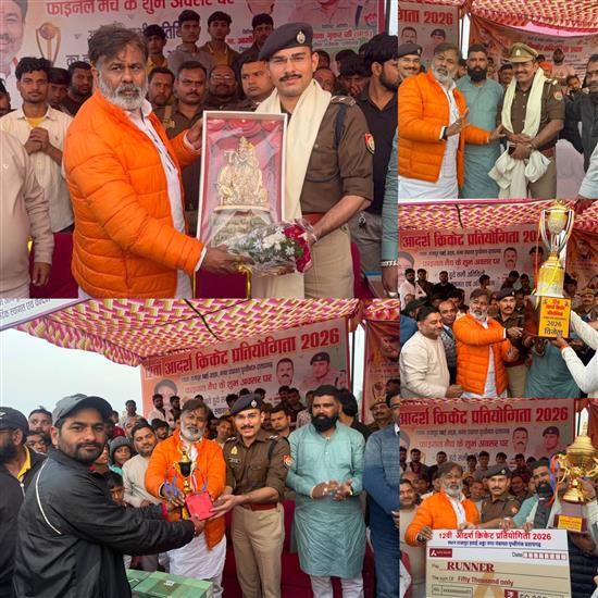 फास्ट न्यूज इंडिया यूपी प्रतापगढ़। रानीगंज विधानसभा क्षेत्र के अंतर्गत नगर पंचायत पृथ्वीगंज स्थित राजापुर हवाई अड्डा परिसर में आयोजित 12वीं आदर्श क्रिकेट प्रतियोगिता–2026 का फाइनल मुकाबला अत्यंत हर्षोल्लास एवं भव्यता के साथ संपन्न हुआ। प्रतियोगिता का आयोजन अध्यक्ष प्रशांत सिंह के नेतृत्व में एवं पूर्व विधायक धीरज ओझा के संरक्षकत्व में सफलतापूर्वक संपन्न हुआ। फाइनल मुकाबला हरियाणा एवं प्रतापगढ़ की टीमों के बीच खेला गया, जिसमें हरियाणा की टीम ने शानदार प्रदर्शन करते हुए जीत हासिल की। हरियाणा टीम के कप्तान विक्रम सिंह के नेतृत्व में टीम ने उत्कृष्ट खेल का प्रदर्शन किया और दर्शकों का भरपूर मनोरंजन किया। फाइनल मैच के अवसर पर मुख्य अतिथि के रूप में पूर्व विधायक धीरज ओझा की गरिमामयी उपस्थिति रही। उन्होंने खिलाड़ियों से परिचय प्राप्त कर विजेता एवं उपविजेता टीम को शुभकामनाएँ दीं।कार्यक्रम में विशिष्ट अतिथि के रूप में क्षेत्राधिकारी नगर प्रशांत राज हुड्डा, कोतवाली देहात थाना प्रभारी पुष्पराज सिं एवं राकेश सिंह जी उपस्थित रहे। अपने संबोधन में पूर्व विधायक धीरज ओझा ने कहा कि खेल युवाओं के शारीरिक, मानसिक एवं नैतिक विकास का सशक्त माध्यम है। इस प्रकार की प्रतियोगिताएँ युवाओं में अनुशासन, टीम भावना, नेतृत्व क्षमता एवं आत्मविश्वास का विकास करती हैं। उन्होंने विजेता हरियाणा टीम सहित प्रतापगढ़ की टीम की भी खेल भावना की सराहना की। फाइनल मुकाबले के दौरान खिलाड़ियों का उत्साह, दर्शकों की भारी भीड़ एवं जनसमर्थन देखते ही बनता था। खेल भावना के साथ खेले गए रोमांचक मुकाबले ने उपस्थित सभी खेलप्रेमियों को मंत्रमुग्ध कर दिया और प्रतियोगिता क्षेत्रवासियों के लिए यादगार बन गई। इस अवसर पर ब्लॉक प्रमुख शिवगढ़ सत्यम ओझा की भी विशिष्ट उपस्थिति रही। कार्यक्रम में नीरज ओझा, अरुण पासवान, सचिन सिंह, अंसार अहमद, स्वामीनाथ तिवारी, अजय मिश्रा, अमित दुबे सहित अनेक गणमान्य नागरिक, जनप्रतिनिधि एवं खेलप्रेमी बड़ी संख्या में मौजूद रहे। आयोजकों द्वारा प्रतियोगिता के सफल, शांतिपूर्ण एवं अनुशासित आयोजन हेतु सभी सहयोगियों, खिलाड़ियों एवं दर्शकों का आभार व्यक्त किया गया तथा भविष्य में भी इस प्रकार के खेल आयोजनों को निरंतर आयोजित करने का संकल्प लिया गया। यह प्रतियोगिता न केवल क्षेत्र की खेल प्रतिभाओं को मंच प्रदान करने में सफल रही, बल्कि सामाजिक एकता, भाईचारे एवं सकारात्मक सोच को भी मजबूती प्रदान करने वाली सिद्ध हुई। रिपोर्ट विशाल रावत 151019049