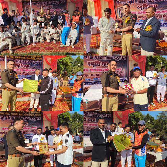 फास्ट न्यूज इंडिया यूपी प्रतापगढ़। पुलिस लाइन में आयोजित स्मृति अंडर-14 क्रिकेट कप का फाइनल मुकाबला पुलिस लाइन रेड प्रतापगढ़ और एस.एस.एस. क्रिकेट एकेडमी के बीच खेला गया। रोमांचक मुकाबले में पुलिस लाइन रेड टीम ने जीत दर्ज कर ट्रॉफी अपने नाम की। पुलिस लाइन रेड ने टॉस जीतकर पहले बल्लेबाज़ी करते हुए 24.3 ओवर में 10 विकेट के नुकसान पर 144 रन बनाए। टीम की ओर से अप्रित ओझा ने सर्वाधिक 49 रनों की शानदार पारी खेली। रायबरेली की ओर से गेंदबाज़ी में सारदा सिंह ने 34 रन देकर 3 विकेट झटके। लक्ष्य का पीछा करने उतरी एस.एस.एस. क्रिकेट एकेडमी रायबरेली की टीम 23.5 ओवर में 123 रन पर ऑलआउट हो गई। टीम की ओर से चित्रांश पांडेय ने 36 रन बनाए। पुलिस लाइन रेड की ओर से आयुष ने बेहतरीन गेंदबाज़ी करते हुए 21 रन देकर 5 विकेट झटके और उन्हें ‘मैन ऑफ द मैच’ घोषित किया गया। मैच के समापन पर पुलिस अधीक्षक प्रतापगढ़ दीपक भूकर ने विजेता टीम को ट्रॉफी प्रदान कर सम्मानित किया। इस अवसर पर अपर पुलिस अधीक्षक (पूर्वी) शैलेन्द्र लाल, क्षेत्राधिकारी लाइन शिव नारायण वैस तथा प्रतिसार निरीक्षक राजीव कुमार राय को भी सम्मानित किया गया। कार्यक्रम में अन्य अधिकारी व कर्मचारीगण उपस्थित रहे। मैच में अंपायर की भूमिका घनश्याम और रामविलास ने निभाई, जबकि स्कोरर मानस और प्रज्ज्वल सिंह रहे। कमेंट्री आरक्षी अरविंद कुमार मौर्या द्वारा की गई। रिपोर्ट विशाल रावत 151019049