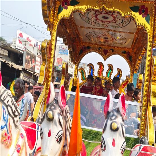 यह यात्रा बाजार के मुख्य चौक, सड़कों और रिहायशी इलाकों से गुजरी। मार्ग में छतों से महिलाओं और बच्चों ने पुष्प वर्षा कर महादेव का अभिनंदन किया, जिससे पूरा वातावरण भक्तिमय हो गया। शोभायात्रा में फूलों से सजा भव्य रथ आकर्षण का मुख्य केंद्र रहा, जिस पर शिव-पार्वती की सजीव झांकी प्रस्तुत की गई थी। भगवान शिव के गणों के रूप में सजे युवाओं ने भस्म लगाकर और अघोरी स्वांग रचकर नृत्य प्रस्तुत किया, जिसे देखने के लिए भारी भीड़ उमड़ी।
