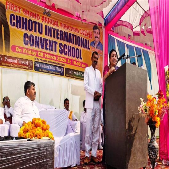फास्ट न्यूज इंडिया यूपी लालगंज प्रतापगढ़। भटनी स्थित छोटू इण्टरनेशनल कान्वेंट स्कूल में हुए वार्षिकोत्सव का शुक्रवार को क्षेत्रीय विधायक एवं कांग्रेस विधानमण्डल दल की नेता आराधना मिश्रा मोना द्वारा मां सरस्वती के चित्र पर माल्यार्पण कर शुभारंभ किया गया। छात्रा सृष्टि, श्रेया, कोमल आदि ने सरस्वती वंदना तथा स्वागत गान की मनमोहक प्रस्तुतियां दी। विधायक मोना ने वार्षिकोत्सव में सरयू समाज कल्याण संस्थान की ओर से मेधावी छात्रा प्रिया सरोज व अर्पिता सरोज को लैपटॉप प्रदान कर सम्मानित किया। बतौर मुख्य अतिथि विधायक मोना ने कहा कि शिक्षा के जरिए ही किसी भी क्षेत्र व समाज तथा राष्ट्र का उत्थान हुआ करता है। उन्होने कहा कि रामपुरखास में सांसद प्रमोद तिवारी की शिक्षा के क्षेत्र में प्राथमिकता के चलते मेधावियों को ज्ञान का लक्ष्य हासिल करने का वातावरण सुदृढ़ हुआ है। उन्होने कहा कि सर्वश्रेष्ठ रामपुरखास का आदर्श इस क्षेत्र को शत प्रतिशत साक्षरता से संतृप्त किया जाना है। वहीं उन्होने कहा कि क्षेत्र में विकास की सभी आवश्यक योजनाओं का लगातार संचालन इसकी सर्वश्रेष्ठता है। विशिष्ट अतिथि कांग्रेस के राष्ट्रीय सचिव सुशील पासी तथा योगेश पासी ने भी शैक्षिक परिवेश की मजबूती को राष्ट्रीय विकास के लिए मुख्य आधार बताया। निदेशक हरिश्चंद्र सरोज ने अतिथियों का स्वागत तथा संचालन डॉ0 नन्हेंलाल यादव ने किया। प्रबंधक हरीलाल सरोज ने आभार प्रदर्शन किया। वहीं विधायक आराधना मिश्रा मोना ने क्षेत्र के शेषपुर धनापुर, भकरा, सीताराम का पुरवा आदि स्थानों पर भी विभिन्न कार्यक्रमों में शामिल हुई। इस मौके पर भुवनेश्वर शुक्ल, जिपंस रघुनाथ सरोज, लालजी यादव, मीडिया प्रभारी ज्ञानप्रकाश शुक्ला, राकेश चतुर्वेदी, अशोक सिंह, मक्खन लाल साहू, आनन्द पाण्डेय, निसार अहमद, रविशंकर शुक्ला, लालजी पटेल, राम आसरे सरोज, छोटे लाल सरोज, आचार्य विद्याधर पटेल, रमेश तिवारी आदि रहे। रिपोर्ट विशाल रावत 151019049