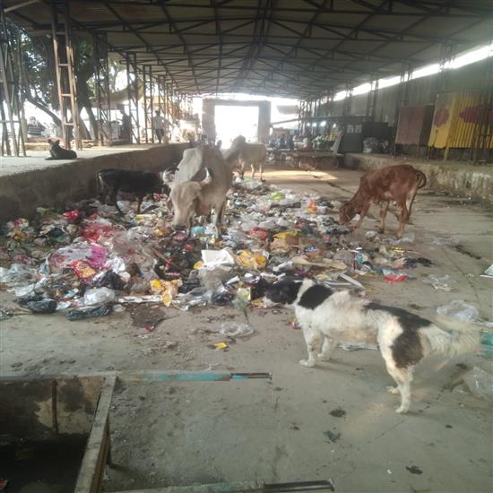 मंडी में चारों तरफ सड़ती हुई सब्जियां और भारी मात्रा में फैली पॉलीथीन के कारण स्थिति भयावह हो गई है। सबसे दर्दनाक दृश्य तब देखने को मिलता है जब भोजन की तलाश में यहां आने वाली गायें कचरे के ढेर में मुंह मारती हैं और अनजाने में भारी मात्रा में प्लास्टिक और पॉलीथीन निगल लेती हैं। स्थानीय लोगों का कहना है कि प्रशासन की अनदेखी के कारण गायें यह जहरीला कचरा खाने को मजबूर हैं, जिससे उनकी सेहत पर बुरा असर पड़ रहा है और कई बार उनकी जान पर भी बन आती है।
