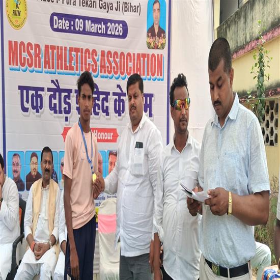 बिहार गया । टेकारी प्रखंड के पूरा गांव में शहीद प्रवीण शर्मा की पुण्यतिथि के अवसर पर भव्य मैराथन दौड़ का आयोजन किया गया। इस कार्यक्रम का उद्घाटन और आयोजन एमसीएसआर एथलेटिक्स एसोसिएशन के डायरेक्टर व समाजसेवी राजू कुमार शर्मा ने ग्रामीणों के सहयोग से किया।