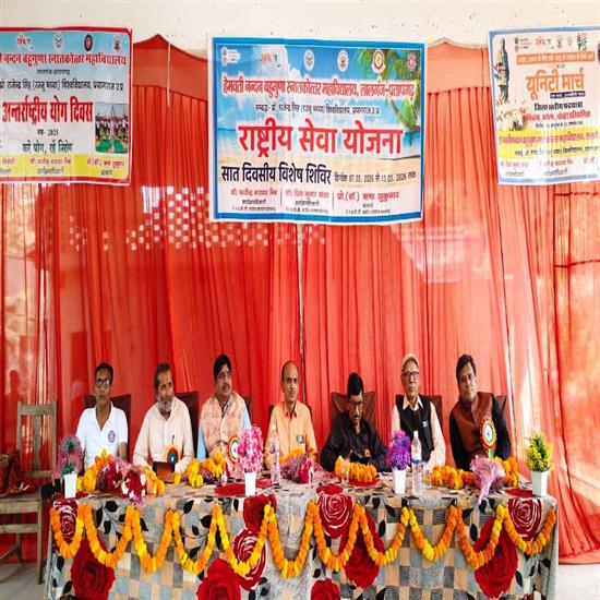 फास्ट न्यूज इंडिया यूपी लालगंज प्रतापगढ़। नगर स्थित हेमवती नंदन बहुगुणा पीजी कालेज में चल रहे सात दिवसीय राष्ट्रीय सेवा योजना शिविर का शुक्रवार को समारोहपूर्वक समापन हुआ। मुख्य अतिथि डॉ0 रामशिरोमणि त्रिपाठी, विशिष्ट अतिथि नायब तहसीलदार वीरेन्द्र मिश्र, डॉ0 पुरूषोत्तम शुक्ल, इं. जितेन्द्र त्रिपाठी व डॉ0 सिद्धार्थ त्रिपाठी द्वारा दीप प्रज्जवलन व मां सरस्वती के चित्र पर माल्यार्पण से कार्यक्रम का शुभारंभ हुआ। कार्यक्रम में छात्र छात्राओं ने सरस्वती वंदना, स्वागत गान, राष्ट्रगीत आदि की सांस्कृतिक प्रस्तुतियों से मंत्रमुग्ध किया। कार्यक्रमाधिकारी डॉ0 फणीन्द्र नारायण मिश्र के संयोजन में प्रबुद्धजनों सभासद कैलाशनाथ तिवारी, जावेद अहमद, ब्रजघोष ओझा, डॉ0 निशान्त पाण्डेय आदि का सम्मान भी हुआ। मुख्य अतिथि डॉ0 रामशिरोमणि त्रिपाठी ने कहा कि राष्ट्रीय सेवा योजना का मुख्य उददेश्य शिविरार्थियों के व्यक्तित्व व चरित्र का विकास करना है। विशिष्ट अतिथि डॉ0 पुरूषोत्तम शुक्ल ने कहा कि एनएसएस शिविर निःस्वार्थ सेवा और समाज के प्रति जिम्मेदारियों को दर्शाता है। विशिष्ट अतिथि इं. जितेन्द्र त्रिपाठी व डॉ0 सिद्धार्थ त्रिपाठी ने एनएसएस की महत्ता बतायी। कार्यक्रम का संचालन डॉ0 गंगाधर मिश्र ने किया। इस मौके पर डॉ0 श्याम नारायण त्रिपाठी, डॉ0 संतोष मिश्र, डॉ0 शिवकुमार यादव, डॉ0 अभिषेक पाण्डेय, डॉ0 सियाराम मौर्य, डॉ0 शैलेन्द्र सरोज, डॉ0 ऐश्वर्य तिवारी, डॉ0 महेश पाण्डेय आदि रहे। रिपोर्ट विशाल रावत 151019049
