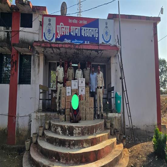 मध्य प्रदेश के आलीराजपुर में दिनांक: 13 मार्च 2026 को पुलिस अधीक्षक आलीराजपुर श्री रघुवंश सिंह के मार्गदर्शन में जिले में अवैध शराब के विरुद्ध चलाए जा रहे विशेष अभियान के तहत थाना बखतगढ़ पुलिस ने बड़ी कार्रवाई करते हुए भारी मात्रा में अवैध अंग्रेजी शराब एवं बीयर जब्त की है। यह कार्रवाई एक सप्ताह के भीतर अवैध शराब के खिलाफ आलीराजपुर पुलिस की चौथी बड़ी सफलता है। इससे पूर्व थाना कट्ठीवाड़ा, आजादनगर एवं चांदपुर पुलिस द्वारा भी बड़ी मात्रा में अवैध शराब एवं परिवहन में प्रयुक्त दो वाहनों को जब्त किया जा चुका है। थाना प्रभारी बखतगढ़ को मुखबिर से सूचना मिली कि ग्राम बखतगढ़ में नर्सरी गेट के पास एक व्यक्ति बड़ी मात्रा में अवैध शराब की पेटियां लेकर कहीं ले जाने की फिराक में बैठा है। सूचना की गंभीरता को देखते हुए पुलिस टीम ने तत्काल घेराबंदी कर मौके पर दबिश दी।