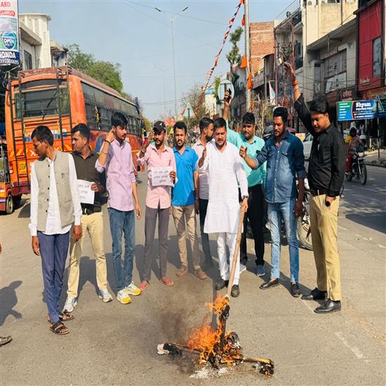 गोंडा ____ राष्ट्रीय छात्र पंचायत की कार्यकर्ताओं के द्वारा एलबीएस चौराहे पर उत्तर प्रदेश पुलिस भर्ती आयोग के अध्यक्ष का पुतला फूंका इस अवसर पर राष्ट्रीय अध्यक्ष शिवम पांडे ने बताया की कल यूपीएसआई की परीक्षा के गलियारों में जो हुआ वह केवल एक प्रश्न नहीं था वही देश के एक गौरवशाली समाज की जड़ों पर प्रहार था मैं पूछना चाहता हूं उस चयन बोर्ड से उन्नति निर्धारकों से क्या आप की कलम इतनी कुंठित हो गई है कि आपको परीक्षा के सवालों में ब्राह्मणवाद दिखने लगा है जिन ब्राह्मण समाज ने देश को मंगल पांडे और चंद्रशेखर आजाद जैसे क्रांतिकारी दिए क्या आज सरकारी तंत्र उन्हें अवसर वादी कहकर प्रमाणित करेगा व छात्र नेता सूरज शुक्ला ने उत्तर प्रदेश के मुख्यमंत्री से मांग की है कि उस अपमानजनक प्रश्न को तुरंत निरस्त किया जाए तथा पेपर सेट करने वाली एजेंसी को ता उम्र के लिए ब्लैकलिस्टेड किया जाए और भरती बोर्ड सामाजिक रूप से माफी मांगे इस अवसर पर जिला अध्यक्ष धर्मेंद्र शुक्ला, रंजीत पांडेय, नीरज, शहजाद ,आलोक पांडे, उमंग मिश्रा, हिमांशु तिवारी,सोनू आदि कार्यकर्ता उपस्थित रहे।
