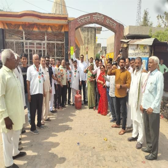 बयाना- ब्लॉक कांग्रेस कमेटी ने रविवार को पंचायत समिति कार्यालय के सामने घरेलू गैस सिलेंडर की बढ़ती कीमतों, किल्लत और कालाबाजारी के विरोध में धरना-प्रदर्शन किया। इस दौरान कांग्रेस कार्यकर्ताओं ने खाली गैस सिलेंडर लेकर केंद्र सरकार के खिलाफ नारेबाजी की। प्रदर्शनकारियों ने सरकार से गैस की कीमतें कम करने और इसकी आपूर्ति बढ़ाने की मांग की। उन्होंने आरोप लगाया कि हाल ही में घरेलू गैस सिलेंडर के दामों में करीब 60 रुपए की बढ़ोतरी की गई है, जिससे आम जनता पर अतिरिक्त आर्थिक बोझ पड़ा है। कांग्रेस नेताओं ने कहा कि लगातार बढ़ती महंगाई ने आम लोगों का बजट बिगाड़ दिया है। उन्होंने आरोप लगाया कि सरकार जनता को राहत देने के बजाय लगातार कीमतें बढ़ाने में लगी हुई है। किसान मोर्चा के जिलाध्यक्ष झमोली सिंघाड़ा, जिला उपाध्यक्ष मनोज पटेल, शहर अध्यक्ष ओमप्रकाश गुप्ता, महिला मोर्चा अध्यक्ष फूलवती सैनी और रेणु राजौरा सहित कई नेताओं ने केंद्र सरकार पर हमला बोला। उन्होंने प्रधानमंत्री नरेंद्र मोदी पर विपक्ष के सवालों से बचने और संसद में आने से कतराने का आरोप लगाया। कार्यकर्ताओं ने केंद्र सरकार को 'जुमलेबाजी की सरकार' बताया। कांग्रेस नेताओं ने कमर्शियल गैस सिलेंडर की कीमतों में बढ़ोतरी और युद्ध जैसी परिस्थितियों के कारण इसकी बिक्री पर रोक लगाने के फैसले का भी विरोध किया। उन्होंने गैस की कालाबाजारी को लेकर भी रोष व्यक्त किया। धरने के दौरान कांग्रेस नेताओं ने सरकार से तत्काल गैस सिलेंडर के दाम कम करने, पर्याप्त गैस आपूर्ति सुनिश्चित करने और आमजन को महंगाई से राहत देने के लिए ठोस कदम उठाने की मांग की। उन्होंने चेतावनी दी कि यदि इन समस्याओं का समाधान नहीं किया गया तो कांग्रेस पार्टी आगे भी आंदोलन जारी रखेगी। इस अवसर पर बंध बारैठा मंडल अध्यक्ष मोहन मिश्रा, कैलादेवी मंडल अध्यक्ष बनैसिंह बिड्यारी, समोगर मंडल अध्यक्ष गंभीर सिंह मीणा, एससी मोर्चा अध्यक्ष रामस्वरूप भंडारी, पूर्व पार्षद योगेश सहारिया, राकेश कुशवाह, विजय लवानिया, चंद्रभान, असलम खान, राजकुमार चहल, अजय पंडित, दानसिंह, बच्चू सिंह, बृजमोहन सेजवाल, देवीसिंह, टीकम सिंह डॉक्टर, प्रताप सिंह सहित बड़ी संख्या में कांग्रेस कार्यकर्ता मौजूद रहे।