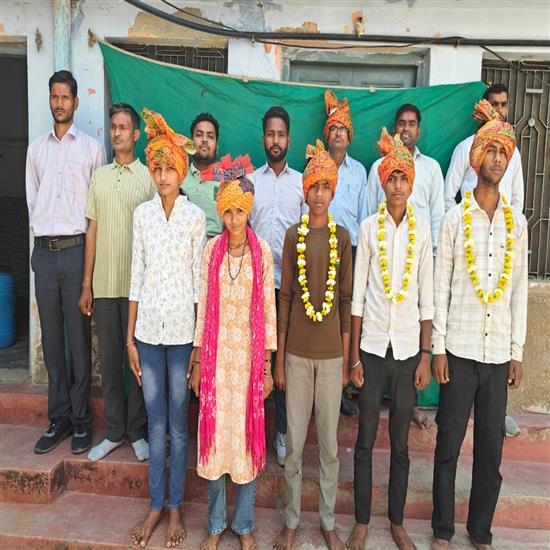 बयाना- ब्लॉक के खेडली गरासिया गांव स्थित श्री सूरज ज्योति माध्यमिक विद्यालय में उत्कृष्ट अंक लाकर क्षेत्र की पहचान बढ़ाने वाले छात्र-छात्राओं का ग्रामीण एवं विद्यालय प्रबंधन की ओर से जोरदार सम्मान किया गया। विद्यालय निदेशक मुरारीलाल शर्मा ने बताया कि यह सफलता विद्यार्थियों की निरंतर कड़ी मेहनत और शिक्षकों के मार्गदर्शन का परिणाम है अभिभावकों ने भी विद्यार्थियों की इस उपलब्धि पर गर्व व्यक्त किया और विद्यालय के प्रयासों की सराहना की। विद्यालय परिवार भविष्य में भी इसी प्रकार उत्कृष्ट परिणाम देने के लिए संकल्पित है। अपनी लगन कड़ी मेहनत एवं अनुशासन में रहकर विद्यालय एवं क्षेत्र का नाम रोशन करने वाले सभी छात्र-छात्राओं का विद्यालय प्रबंधन एवं ग्रामीणों ने आज शुक्रवार को विद्यालय परिसर में ही उपस्थित होकर माला एवं साफा पहनकर तथा मिठाई खिलाकर जोरदार स्वागत किया। इस अवसर पर इस अवसर पर छात्र-छात्राओं के अभिभावकों के साथ-साथ ग्रामीण एवं विद्यालय परिवार के अनेक लोगों उपस्थित रहे सभी ने छात्रों के उज्ज्वल भविष्य की कामना की। माध्यमिक बोर्ड परीक्षा में श्रेष्ठ परिणाम के कारण सम्मानित छात्र-छात्राओं में शिवानी कुमारी, सुमित चौधरी, राकेश कुमार , योगिता कुमारी, शिवा , छवि कुमारी, विवेक भोजन,देवकी, तनु कुमारी, मोहित कुमार उपस्थित रहे।