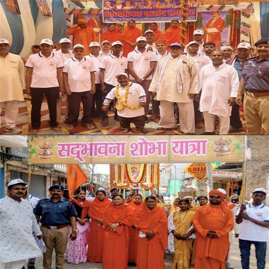 वाराणसी । विश्व आध्यात्मिक वाराणसी धर्मनगरी के अंतर्गत राजातालाब में मानव उत्थान सेवा समिति की शाखा सर्व धर्म मंदिर आश्रम वाराणसी द्वारा दो दिवसीय सद्भावना सत्संग समारोह में द्वितीय दिन की शुरुआत सुबह 8:00 बजे से डीह बाबा मंदिर प्रांगण से सद्भावना शोभा यात्रा निकाली गई । इस में अनेक युवा, शाखा कार्यकर्ता व अनेक श्रद्धालुओं ने बढ़ चढ़कर हिस्सा लिया। अनेक कन्याओं द्वारा कलश यात्रा व महापुरुषों के चित्र के साथ जयघोष से राजातालाब पवित्र आध्यात्मिक स्पंदन से प्रफुल्लित हुआ। अनेक तीर्थ स्थलों से आए हुए संत समागम आदरणीय महात्मा धारा बाई, महात्मा सुजाता बाई जी ,महात्मा सारथानन्द, महात्मा चंदन बाई, एवं महात्मा महादेवी बाई के मार्गदर्शन में सदभावना पदयात्रा का समापन हुआ।
