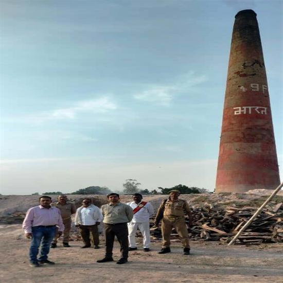 पतुलकी में ईट भटठे का निरीक्षण करते लालगंज एसडीएम व अन्य अधिकारी