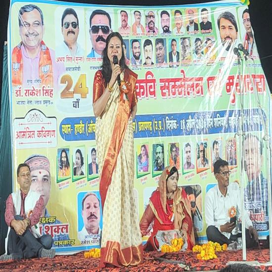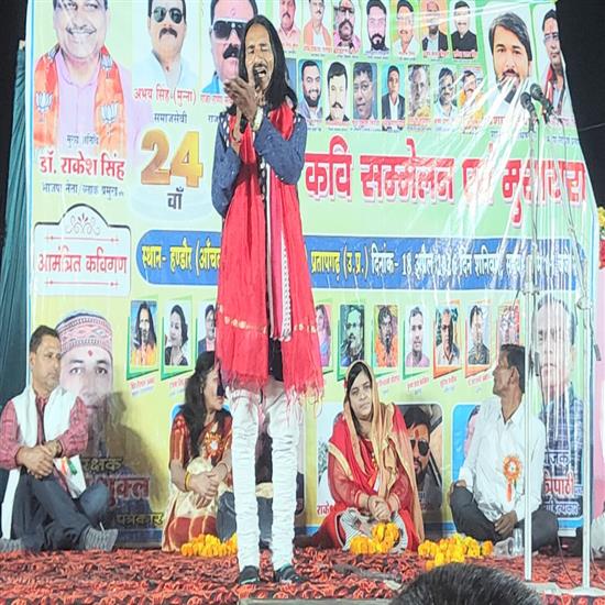 फास्ट न्यूज इंडिया यूपी लालगंज, प्रतापगढ़। सगरासुन्दरपुर के समीप हण्डौर में शनिवार की रात सावित्री शैक्षणिक एवं समाज कल्याण समिति के द्वारा 24वा राष्ट्रीय कविसम्मेलन एवं मुशायरे में नामचीन कवियों ने राष्ट्रीय एवं सामाजिक विसंगतियों पर जमकर प्रहार किया। साहित्यिक आयोजन की शुरुआत शासकीय अधिवक्ता आलोक त्रिपाठी व डॉ शक्ति कुमार पांडेय के द्वारा मां सरस्वती के चित्र पर माल्यार्पण व दीप प्रज्ज्वलन के द्वारा हुआ। कवि सम्मेलन का आगाज सुरेश नवीन की वाणी वंदना से हुयी। सुल्तानपुर की सपना मिश्रा ने- बांधूंगी नहीं आज तुमको प्रिया, वन को जाओ छोड़ महल अपनी प्रिया से लोगों को आध्यात्म से जोड़ा। हास्य कवि निर्झर प्रतापगढ़ी ने अपनी रचना- जय गुंडा काका, तोहरे भय से कांपे गांव गली नाका... से वर्तमान परिस्थितियों पर करारा व्यंग्य किया। शायर कृष्ण कांत कामिल ने- रंज सहते रहे मुस्कुराते रहे, साथ हम जिंदगी का निभाते रहे साथ मंच को ऊंचाई दी। सीतापुर के रोहित विश्वकर्मा ने अपनी रचना- कहीं गुस्सा आई लव यू उनसे बोलने वाले, वही लड़की भी उनकी बाद में चप्पल भी खाते हैं सुनाकर लोगों को गुदगुदाया। लखीमपुर खीरी रंजना सिंह हया ने- इक नजर तुझको देखने आई हूं मैं, देख लूं इक नजर फिर चली जाऊंगी से युवाओं को झकझोरा। मुख्य अतिथि भाजपा नेता एवं ब्लॉक प्रमुख पति डॉ राकेश सिंह ने कहा कि साहित्यकार समाज का दर्पण होता है। उन्होंने कहा कि रचनाकार देश और समाज को नई दिशा देने का कार्य करता है। कवि सम्मेलन में गड़बड़ सुल्तानपुरी, हुमा अक्सीर,डॉ अंजनी अमोघ, फैयाज परवाना, विशाल श्रीवास्तव, सुरेश नवीन, बिहारी लाल अम्बर, चंद्र शेखर विकास, आशुतोष दीपक की भी रचनाएं श्रोताओं को भायी। अध्यक्षता हरिवंश शुक्ल शौर्य, संचालन हास्य कवि बिहारी लाल अम्बर ने किया। स्वागत अविनाश पाण्डेय संजय शुक्ल तथा आभार संयोजक आयोजक कवि अनूप त्रिपाठी ने किया। इस मौके पर कृष्ण प्रताप सिंह मथुरा प्रसाद यादव, श्याम जी जायसवाल, अभय प्रताप सिंह मुन्ना, मनोज सिंह, आलोक कुशवाहा राजेश मिश्र, अरविंद पाण्डेय, ज्ञान प्रकाश शुक्ल, अनिल तिवारी महेश, विकास मिश्र, श्याम शंकर पांडे, आमोद तिवारी, बच्चू दुबे, विदेहानंद जी महाराज रहे। रिपोर्ट विशाल रावत 151019049
