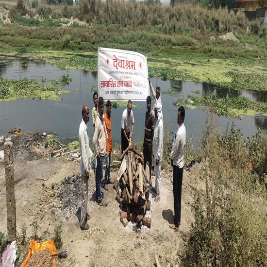 बतया गया कि थाना सरायलखनसी जनपद मऊ पुलिस द्वारा बाद पोस्टमार्टम पी.एम. न. 130/2026 के तहत पूर्वांह में देवाश्रम को अन्तिम संस्कार हेतु निःशुल्क प्राप्त कराये गए एक अज्ञात हिन्दू पुरुष शव की लावारिस शव यात्रा जय शिव जय शव व राम नाम सत्य है के उद्घोष के साथ देवाश्रम के अंतिम संस्कार दल मऊ के महामंत्री नारद भारती के नेतृत्व में लाश घर मऊ से प्रारम्भ होकर सर्वेशवरी मुक्ति धाम ढेकुलिया घाट श्मशान मऊ पहुंची जहाँ अपरान्ह में शव को देवाश्रम के प्रबन्ध निदेशक पी एन सिंह द्वारा पूरे विधि विधान से मुखाग्नि दी गई।