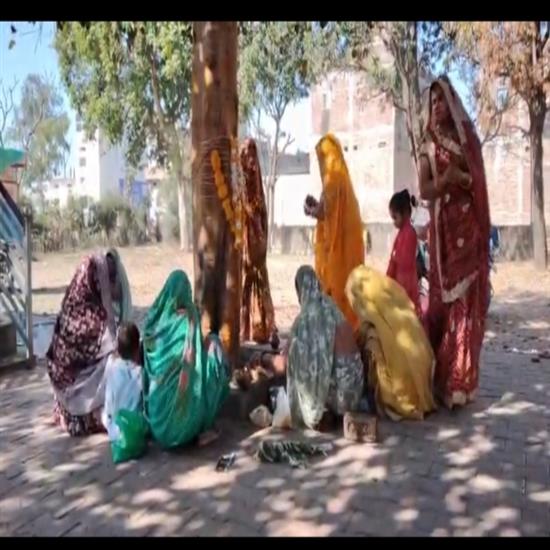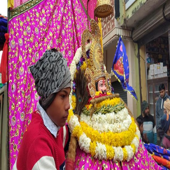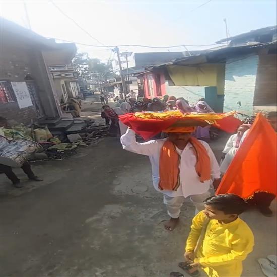 गाजे-बाजे और अबीर गुलाल के साथ शीतला माता की प्रतिमा का नगर भ्रमण