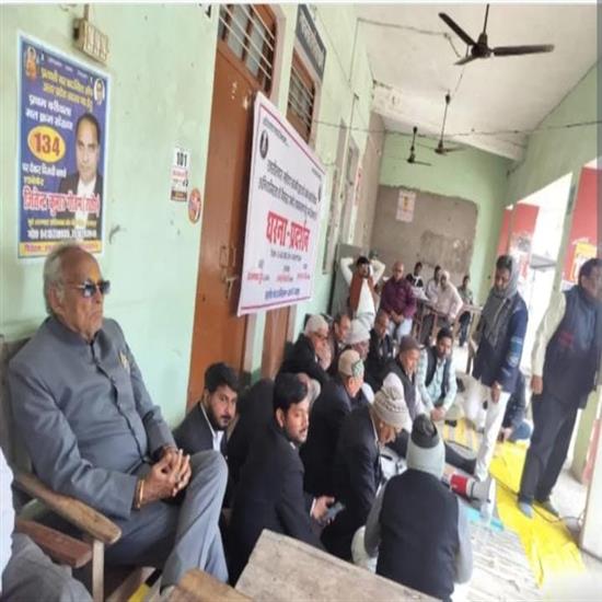 अधिवक्ताओं ने धरना-प्रदर्शन कर किया खजनी तहसीलदार का विरोध