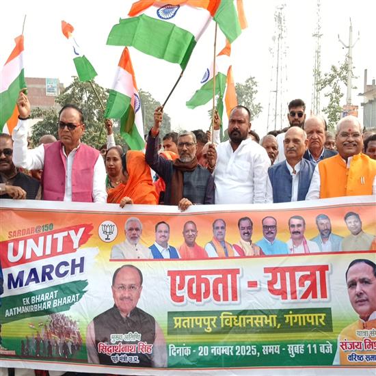 मिया का पूरा में भाजपा की भव्य तिरंगा एकता पद यात्रा, सरदार पटेल की 150वीं जयंती पर हजारों युवाओं का जोश