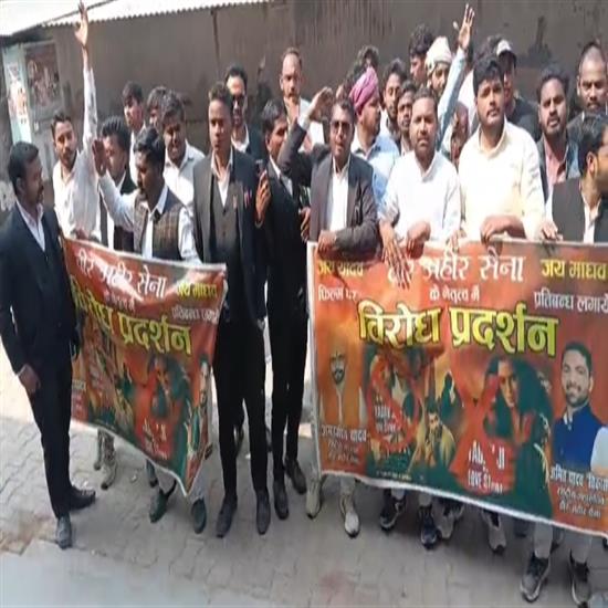 हंडिया तहसील में वीर अहीर सेना के नेतृत्व में प्रदर्शन, फिल्म के विरोध में सौंपा ज्ञापन