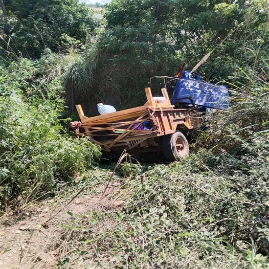 अनियंत्रित होकर पलटा ट्रैक्टर, बड़ा हादसा टला बाल-बाल बचे लोग