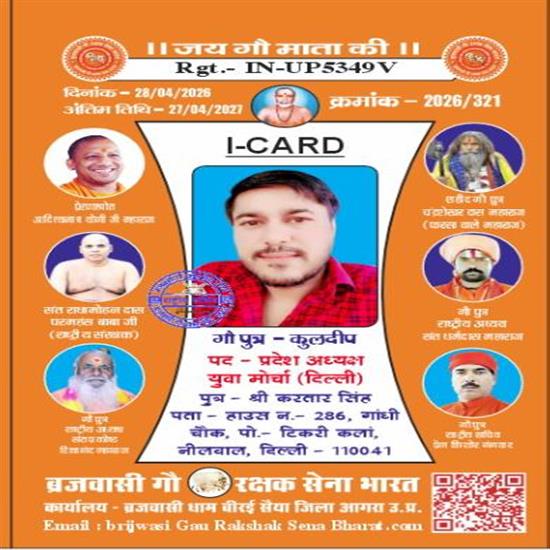गौ पुत्र कुलदीप को युवा मोर्चा दिल्ली प्रदेश अध्यक्ष पद पर किया नियुक्त