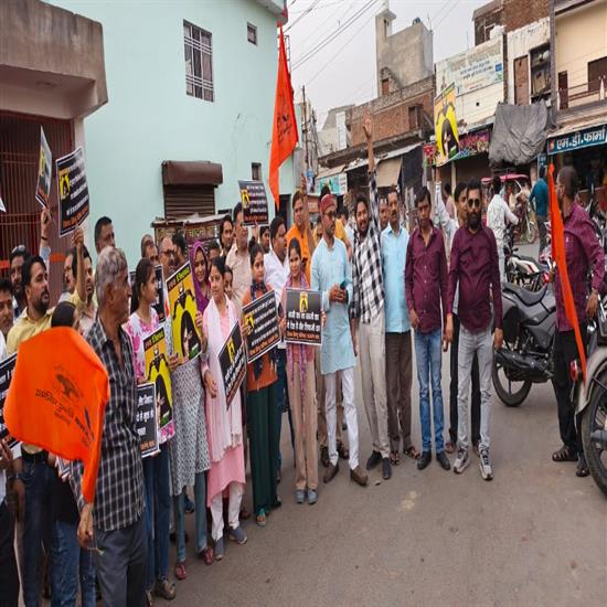 विश्वहिंदू परिषद बजरंगदल द्वारा लवजिहाद पर मेन चौराहे पर विरोध प्रदर्शन