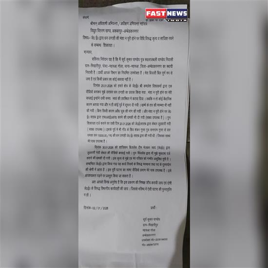 अम्बेडकरनगर: बिजली विभाग के जे.ई. पर अवैध वसूली और साजिश रचने का आरोप, उपभोक्ता ने की शिकायत