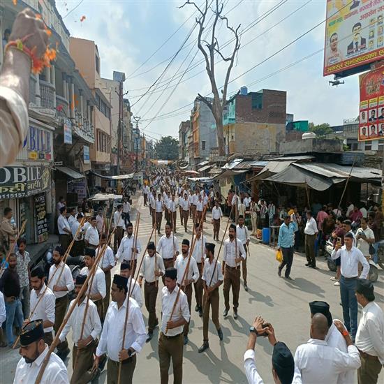 फ़ास्ट न्यूज़ इंडिया यूपी कासगंज। राष्ट्रीय स्वयंसेवक संघ 100 वर्ष पूर्ण होने पर स्थापना दिवस के अवसर पर स्वयं सेवकों ने पथ संचलन के बाद प्रभुपार्क के मैदान में शस्त्रों का पूजन किया गया। पथ संचलन के माध्यम से स्वयं सेवकों ने संघ की शक्ति का अहसास कराया और अनुशासन का प्रदर्शन किया। इस दौरान हिंदू समाज से संगठित होने की अपील भी की।राष्ट्रीय स्वयंसेवक संघ के स्थापना दिवस विजयादशमी के अवसर पर विभाग संघचालक उमाशंकर शर्मा, विभाग प्रचारक कुलदीप, जिला संघचालक दीपराज माहेश्वरी व नगर संघचालक शरद माहेश्वरी ने दीप प्रज्वलित किया। इस दौरान अनिरुद्ध शर्मा नगर कार्यवाह कासगंज ने बताया कि आज शक्ति उपासना का दिन है। विजयदशमी के अवसर वर्ष 1925 में संघ की स्थापना हुई। आज संघ को 100 वर्ष पूर्ण हो गए हैं, आज का दिन विजय की आकांक्षा से युक्त संगठित हिंदू समाज ही सभी समस्याओं पर विजय प्राप्त कर सकेगा। कहा कि एक स्वाभिमानी, समृद्धशाली, सुशील, संपन्न, संगठित एवं समरस भारत के समग्र तथा सुंदर प्रारूप को लेकर संघ कार्य अग्रसर हो रहा है। संघ के स्वयंसेवक संगठनात्मक उपलब्धियां को सुकृढ़ करते हुए और समस्या व चुनौतियों का क्षमता से सामना करते हुए समाज में सर्वत्र आत्मविश्वास का दीप जलाकर सक्रियता की मालिका का निरंतर निर्माण कर रहे हैं। इसी राष्ट्र साधना को हम अधिक समर्पण भाव से करते रहेंगे ताकि अपने सपने साकार होने की स्वर्णिम वेला को इन्हीं शरीर आंखों से हम देख सकें। तत्पश्चात स्वयंसेवकों द्वारा पथ संचलन निकाला गया। पथ संचलन प्रभूपार्क से शुरू होकर मालगोदाम रोड, रेलवे रोड, गांधी मूर्ति, सोरों गेट, सत्तार बैैंड वाली गली, बिलराम गेट, ठंडी सड़क, लक्ष्मीगंज होते हुए पुनः प्रभूपार्क पर पहुचकर सम्पन्न हुआ। पथ संचलन के रास्ते में जगह-जगह लोगों ने पुष्प वर्षा कर स्वागत किया और भारत माता के जयकारे लगाए। स्टेट इंचार्ज मोहित गुप्ता 151022222