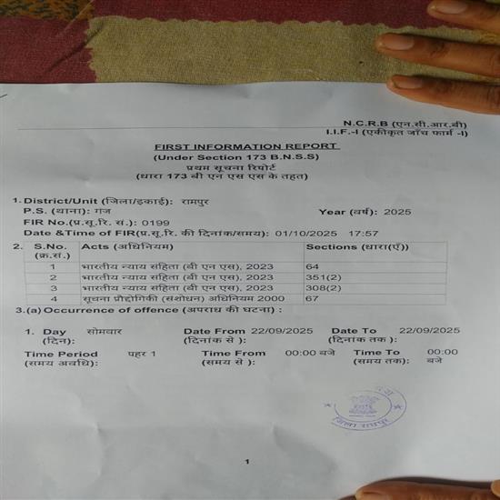 रामपुर। थाना गंज क्षेत्र में पक्का बाग निवासी दानिश नामक युवक पर अपनी पड़ोसी महिला सीमा की नहाते समय वीडियो बनाकर ब्लैकमेल करने का गंभीर आरोप लगा है। आरोप है कि दानिश पिछले 11 महीनों से सीमा को उस वीडियो के आधार पर धमका रहा था और कहता था कि यदि उसने किसी को बताया तो वीडियो वायरल कर देगा और उसका पति उसे तलाक दे देगा। आख़िरकार पीड़िता ने साहस जुटाकर अपने पति राजू को पूरी बात बताई। पति और परिवार के साथ सीमा ने यह मामला पुलिस अधीक्षक रामपुर तक पहुँचाया। पुलिस ने तुरंत कार्रवाई करते हुए थानागंज में दानिश के खिलाफ मुकदमा दर्ज कर लिया है। मामले की जाँच थानागंज के क्राइम इंस्पेक्टर रामवीर को सौंपी गई है। सीमा ने अपनी आवाज़ मुख्यमंत्री योगी आदित्यनाथ तक पहुँचाई है। अब देखना होगा कि पुलिस की कार्रवाई से उसे जल्द न्याय मिल पाता है या नहीं।