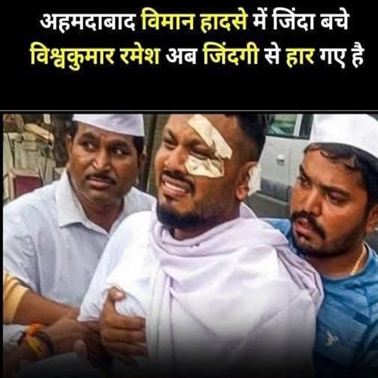 फ़ास्ट न्यूज़ इंडिया 12 जून 2025 को अहमदाबाद से उड़ान भरने वाली फ्लाइट AI171 सिर्फ 40 सेकंड तक आसमान में रही और फिर हो गई। वो विमान आसमान में नहीं बल्कि आग में गुम होकर राख में तब्दील हो गया। और उसी राख में से एक शख्स बाहर निकला जिंदा लेकिन अंदर से पूरी तरह टूटा हुआ। इतना टूटा कि आज वह खुद कहता है काश मैं उसी प्लेन में रह जाता। उसका नाम है विश्वकुमार रमेश। कभी-कभी ऐसा भी होता है कि जिंदगी एक हादसे में खत्म नहीं होती और वह हादसा जिंदगी बन जाता है। आज क्लियर कट में उसी एक शख्स की कहानी जो अहमदाबाद विमान हादसे में जिंदा बच गया।