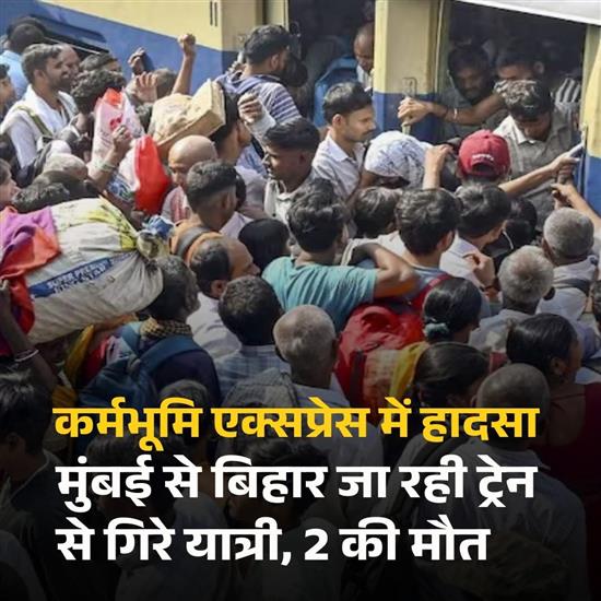 मुंबई से बिहार जा रही कर्मभूमि एक्सप्रेस में एक दुखद हादसा सामने आया। नासिक रोड के पास ट्रेन से तीन यात्री गिर गए, जिनमें दो युवकों की मौके पर मौत हो गई, जबकि एक गंभीर रूप से घायल है। अधिकारियों के अनुसार भीड़भाड़ के कारण यह हादसा हुआ। यह घटना दीपावली के सीजन और बिहार चुनाव के समय हुई, जब यात्रियों की संख्या सामान्य से अधिक थी। पुलिस ने आकस्मिक मृत्यु का मामला दर्ज कर जांच शुरू कर दी है। मृतकों की उम्र लगभग 30-35 साल बताई जा रही है, और घायल यात्री को जिला सरकारी अस्पताल में भर्ती कराया गया है। पुलिस टीम और रेलवे अधिकारियों ने तुरंत मौके पर पहुंचकर पंचनामा तैयार किया और शवों की पहचान की प्रक्रिया शुरू की। जांच जारी है कि यात्री त्योहार मनाने या मतदान के लिए बिहार जा रहे थे। राजेश शिवहरे 151168597