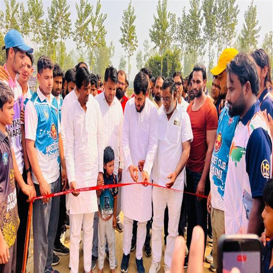 फ़ास्ट न्यूज़ इंडिया यूपी हापुड़ स्थानीय स्तर पर खेल भावनाओं को बढ़ावा देने के उद्देश्य से आयोजित क्रिकेट टूर्नामेंट का शुभारंभ जिला पंचायत सदस्य हाजी आरिफ अली ने फिता काट कर किया! यह आयोजन ग्रामीण क्षेत्र के युवाओं को प्रोत्साहित करने के लिए किया गया, जिसमें विभिन्न गांव की टीमों ने हिस्सा ले रहे है, हाजी आरिफ अली ने उद्घाटन समारोह को संबोधित करते हुए कहा कि क्रिकेट जैसा खेल न केवल शारीरिक फिटनेस बढ़ाते हैं, बलिक सामाजिक एकता और अनुशासन का भी पाठ पढ़ाते हैं! उन्होंने खिलाड़ियों को शुभकामना देते हुए कहा कि ऐसे आयोजन ग्रामीण विकास में महत्वपूर्ण भूमिका निभाते हैं! जिला पंचायत सदस्य हाजी आरिफ लेने कहा जो विजेता टीम होगी उस टीम को इलेक्ट्रिक एक्टिवा का पुरस्कार दिया जाएगा! सेकंड टीमों को ₹5100 का पुरस्कार दिया जाएगा, आयोजकों के अनुसार, प्रतियोगिता अगले कुछ दिनों तक चलेगी, जिसमें नगद पुरस्कार ट्रॉफी वितरित की जाएगी, समारोह में स्थानीय पंचायत प्रतिनिधि ग्रामीण और युवा बड़ी संख्या में उपस्थित रहे जाबिर अली 151044786