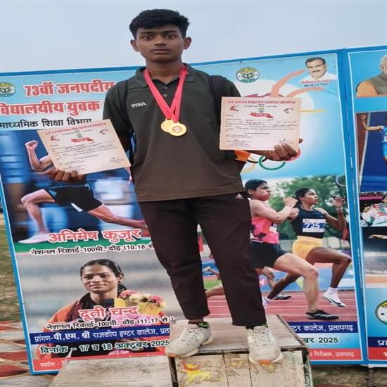 फास्ट न्यूज इंडिया यूपी प्रतापगढ़। राजकीय इंटर कालेज में हुई दो दिवसीय जिला युवक खेल प्रतियोगिता में बच्चा बैंक फ्रेंड्स ग्रुप के स्टूडी सेंटर के छात्र हंसदीप विश्वकर्मा ने अंडर 14 में हाई जंप और ट्रिपल जंप में प्रथम स्थान प्राप्त कर गोल्ड जीता। इस मौके पर जिला विद्यालय निरीक्षक ओम कारा राणा और प्रिंसिपल शिवाकांत तिवारी मेडल और प्रमाण पत्र से सम्मानित किया। हंसदीप के खेल टीचर राजेश कुमार ने बताया कि बच्चा बैंक छात्र की पढ़ाई और खेल में मदद कर रहा है। उसका चयन मंडल के लिए हुआ है। रिपोर्ट विशाल रावत 151019049