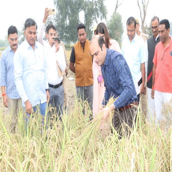 यूपी प्रतापगढ़। जिलाधिकारी शिव सहाय अवस्थी ने तहसील सदर के अन्तर्गत ग्राम पंचायत खजोहरी में धान की फसल के उत्पादन व उत्पादकता को जानने को लेकर क्रॉप कटिंग करायी। इस दौरान जिलाधिकारी ने राजस्व व कृषि विभाग की टीम के साथ किसान छेदीलाल के खेत पर पहुॅचकर स्वयं धान की कटाई भी की। रैंडम नंबर के आधार पर 10 मीटर भुजा वाले समबाहु त्रिभुज ( जिसका क्षेत्रफल 43.3 वर्ग मीटर है) की फसल कटाई प्रयोग सफलतापूर्वक जिलाधिकारी के समक्ष संपन्न की गई, इस प्रयोग में 17.380 किलोग्राम उपज प्राप्त हुआ, जिसके आधार पर 40 कुंतल प्रति हेक्टेयर औसत उपज अनुमानित की गई। उन्होंने किसानों से अपील की कि वे अपनी धान की फसल सरकारी क्रय केंद्र पर ही बेचें ताकि उन्हें उचित मूल्य मिल सके। उन्होने कहा कि किसान भाई पराली न जलाएं और अपने नजदीक की गौशाला पर पराली को ले जाये और वहां से गोबर की खाद लाकर अपने खेतों में डाले जिससे खेतों की उर्वरक क्षमता भी बढ़े और उत्पादन में गुणात्मक सुधार हो सके। क्रॉप कटिंग प्रधानमंत्री फसल बीमा योजना के तहत किसानों को फसल क्षतिपूर्ति का भुगतान करने के लिए महत्वपूर्ण है। इस अवसर पर उप जिलाधिकारी सदर नैन्सी सिंह, जिला कृषि अधिकारी अशोक कुमार, अपर सांख्यिकी अधिकारी मयंक बाजपेई, कानूनगो सुरेश चंद्र, लेखपाल सुधीर पाण्डेय एवं बीमा कंपनी से जिला प्रबंधक अभिज्ञान सिंह, योगेश वर्मा एवं गांव के अन्य लोग भी उपस्थित रहे। देखें प्रतापगढ़ से विशाल रावत की रिपोर्ट