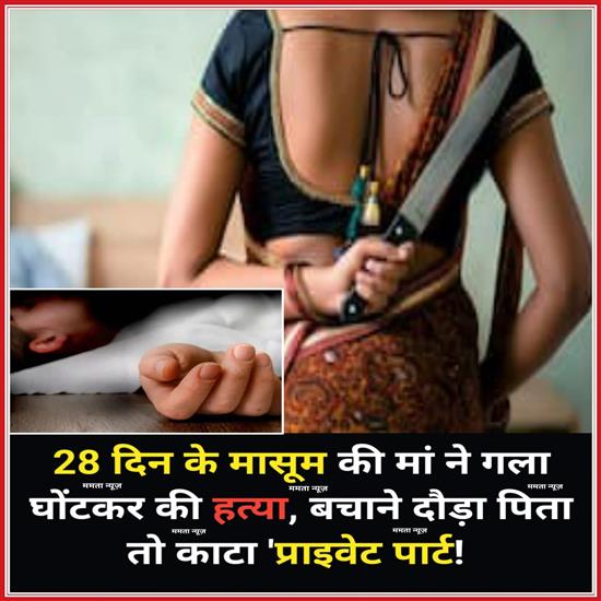फ़ास्ट न्यूज़ इंडिया मालनपुर/भिंड। 'पूत कपूत सुने हैं, पर माता न सुनी कुमाता' इस पंक्ति को मालनपुर के वार्ड क्रमांक 14 में हुई घटना ने झुठलाकर रख दिया। पति-पत्नी के बीच हुए झगड़े में मां ने अपने 28 दिन के बेटे की गला दबाकर हत्या कर दी। जब पिता बच्चे को बचाने दौड़ा तो महिला ने पति को चाकू मार दिया। चाकू पति के प्राइवेट पार्ट पर जाकर लगा, जिससे वह घायल हो गया। दिल दहला देने वाली इस वारदात ने लोगों के रोंगटे खड़े कर दिए। मालनपुर थाना पुलिस ने इस मामले में आरोपित महिला के खिलाफ केस दर्ज कर गिरफ्तार कर लिया है।जानकारी के अनुसार, मालनपुर के वार्ड क्रमांक 14 में चार माह पहले किराए के मकान में 20 वर्षीय ऊषा बघेल अपने पति 21 वर्षीय जगन्नाथ पुत्र शिवलाल बघेल निवासी लाधवारी महुआ खेरा थाना जिला ललितपुर यूपी ने रहना शुरू किया था। इसी साल जनवरी 2025 में जगन्नाथ और ऊषा की शादी हुई थी। शादी के बाद जगन्नाथ मालनपुर रहने के लिए आ गया। जहां वह मजदूरी का काम करता था। तीन अक्टूबर को ऊषा ने बेटे को जन्म दिया। बेटे का नाम देव रखा था।जगन्नाथ ने पुलिस को बताया कि शुक्रवार-शनिवार की रात 12 से एक बजे के बीच ऊषा ने मुझसे विवाद करना शुरू कर दिया। जब मैंने, विवाद न करने करने की बात कही तो ऊषा ने सोते हुए बेटे का गला दबा दिया। जब मैं अपने बेटे को बचाने के लिए आगे बढ़े तो ऊषा ने पास में रखे चाकू से हमला किया, जो मेरे गुप्तांग पर लगा और खून बहना शुरू हो गया। इसके बावजूद भी जैसे-तैसे मैंने, अपने बेटे को उठाया तो उसका पूरा शरीर ठंडा पड़ चुका था, सांस चलना बंद हो गई थी। इसके बाद मैं, अपने बेटे को लेकर अस्पताल पहुंचा, जहां डाक्टरों ने बच्चे की जांच कर उसे मृत घोषित कर दिया। साथ ही मेरा उपचार शुरू हुआ।जगन्नाथ ने बताया कि मेरी पत्नी मुझ पर शक करती थी, पत्नी का कहना था कि मेरा किसी अन्य महिला के साथ साथ चक्कर चल रहा है। इसी बात को लेकर कुछ दिनों से मेरे घर में विवाद हो रहा था। पत्नी ऊषा छरैंटा खनियाधाना शिवपुरी की रहने वाली है। रिश्ते में ये मेरी शाली लगती थी। पत्नी ऊषा की पहली शादी चार साल पहले ग्राम बक्शनपुर शिवपुरी में हुई थी। शादी के बाद पति ने इसे छोड़ दिया था। इसके बाद मैंने, जनवरी माह में इससे शादी कर ली। शादी के बाद मेरी पत्नी ने मेरे माता-पिता से विवाद करना शुरू कर दिया। साथ ही अपने सास-ससुर से अलग रहने की जिद शुरू कर दी। इसके बाद मैं, अपनी पत्नी को लेकर मालनपुर आ गया था।मालनपुर थाना प्रभारी प्रदीप सोनी ने कहा कि मां के द्वारा बेटे की हत्या करने के मामले में आरोपित महिला के खिलाफ केस दर्ज कर उसे गिरफ्तार कर लिया गया है। मामले की जांच के बाद आगे की कार्रवाई की जाएगी।