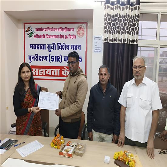 एसडीएम शाक्य ने एसआईआर के तहत कार्य पूर्ण करने पर विधानसभा पिछोर के मनियार के मतदान केंद्र क्रमांक 26 के बीएलओं राजेन्द्र गुप्ता को शत प्रतिशत डिजिटलाइजेशन कार्य पूर्ण करने पर सम्मानित किया है। इसी के साथ गढरोली के मतदान केंद्र क्रमांक 62 के बीएलओ राजेन्द्र सिंह गौर द्वारा सभी मतदाताओं के फार्म बीएलओ एप पर अपलोड कर, कार्य पूर्ण करने पर सम्मानित किया गया है। रिपोट - राजू जाटव पिछोर 151173825