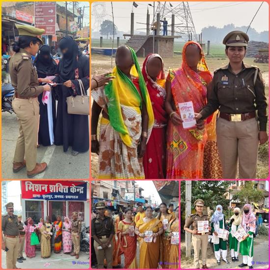 प्रयागराज में महिलाओं एवं बालिकाओं की सुरक्षा, सम्मान व स्वावलंबन सुनिश्चित करने के उद्देश्य से उ0प्र0 सरकार द्वारा संचालित महत्वाकांक्षी योजना “मिशन शक्ति 5.0” के तहत प्रयागराज पुलिस आयुक्त व अपर पुलिस आयुक्त के निर्देशन में व प्रयागराज पुलिस उपायुक्त गंगानगर व अपर पुलिस उपायुक्त गंगानगर के कुशल पर्यवेक्षण में दिनांक-27.11.2025 को गंगानगर जोन के समस्त थानों की महिला पुलिसकर्मियों/मिशन शक्ति टीमों ने अपने-अपने थाना क्षेत्रों के प्रमुख बाजारों, कस्बों, शिक्षण संस्थानों, धार्मिक स्थलों एवं अन्य भीड़-भाड़ वाले सार्वजनिक स्थलों पर जाकर महिलाओं/बालिकाओं को उनके अधिकारों एवं सरकार द्वारा चलायी जा रही विभिन्न योजनाओं के बारे में बताकर जागरुक किया गया । टीम द्वारा बालिकाओं को साइबर सुरक्षा के सम्बंध में जानकारी देकर जागरुक किया गया एवं सोशल मीडिया को सावधानी पूर्वक प्रयोग करने के लिये भी सुझाव दिया गया । किसी भी शोहदों द्वारा परेशान करने पर तत्काल डायल-112 अथवा मिशन शक्ति टीम से शिकायत करने करने को बताया गया और वहीं पर मिशन शक्ति टीम द्वारा महिला सुरक्षा व महिला सशक्तिकरण के सम्बन्ध में बालिकाओं/छात्राओं एवं महिलाओं को विभिन्न हेल्पलाइन नम्बर जैसे पुलिस आपात सेवा-112, वूमेन पावरलाइन-1090, महिला हेल्पलाइन-181, सीएम हेल्पलाइन-1076, साइबर हेल्पलाइन-1930 व मिशन शक्ति केन्द्र आदि के बारें में जानकारी देकर जागरुक किया गया तथा पम्पलेट वितरित किया गया । रिपोट - प्रदीप मिश्रा 151045438