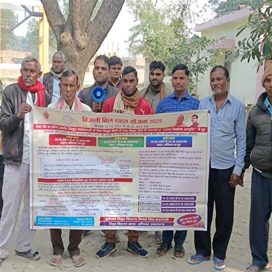 यूपी प्रयागराज के हंडिया में विद्युत वितरण खंड हंडिया के अधिशासी अभियंता इंजीनियर अवधेश प्रताप सिंह व विद्युत उपखंड कटहरा ऊपर खंड अधिकारी ईश्वर शरन के दिशा-निर्देश में अवर अभियंता मुकेश मौर्य व अवर अभियंता धनुपूर संजय कुमार एवं अन्य कर्मचारियों द्वारा उत्तर प्रदेश सरकार की महत्वाकांक्षी विद्युत बिल बकाया धनराशि पर संपूर्ण ब्याज एवं मूलधन में 25 परसेंट की छूट हेतु जन जागरूकता रैली विद्युत उपखंड कटहरा के उपकेंद्र धनुपूर से निकली गई एवं जनमानस को उत्तर प्रदेश सरकार द्वारा जनहित में लाई गई योजना का लाभ बताते हुए प्रोत्साहित एवं संदेशित किया गया और मुक्ति योजना में 31 मार्च तक के विद्युत बिल बकाया पर संपूर्ण ब्याज की 100% माफी एवं विद्युत बिल के मूलधन में से 25 परसेंट की माफी की योजना तथा विद्युत चोरी के पकड़ा ने पर 50% का प्रावधान किया गया है और उपभोक्ताओं द्वारा दिनांक 1 दिसंबर 2025 से ₹2000 अदा कर रजिस्ट्रेशन करना होगा जिसमें ऐसे उपभोक्ता जिनके पास धनराशि काम है वह ₹500 प्रतिमा एवं ₹700 प्रतिमा की किस्त तथा वर्तमान माह के बिल के साथ जमा करके भी अपने विद्युत बिल का भुगतान कर सकते हैं। और विद्युत चोरी में पकड़े जाने पर रजिस्ट्रेशन करने के बाद प्रथम चरण दिनांक 1 दिसंबर 2025 से 31 दिसंबर 2025 तक के उपभोक्ताओं को 50% की माफी दिनांक 1 जनवरी 2026 से 31 जनवरी 2026 तक के चरण में रजिस्ट्रेशन करने वाले उपभोक्ताओं को 45 परसेंट की छूट तथा दिनांक 1 फरवरी 2026 से दिनांक 28 फरवरी 2026 तक के बीच में रजिस्ट्रेशन करने वाले उपभोक्ताओं को 40% की छूट प्राप्त होगी इस मौके पर अवर अभियंता कटहरा मूकेश मौर्य व अवर अभियंता धनुपूर संजय व अन्य कर्मचारि गड़ मौके पर मौजूद रहे । देखे प्रयागराज से प्रदीप मिश्रा की रिपोट