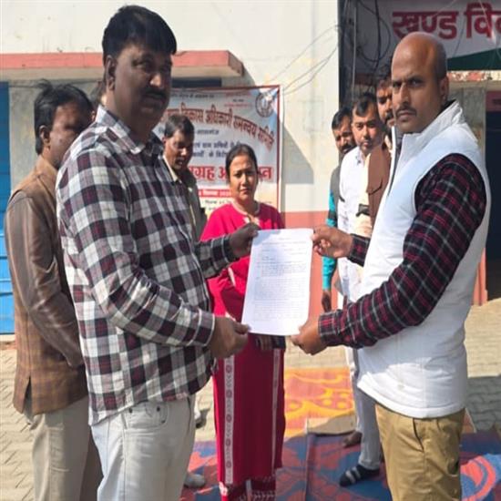 लालगंज ब्लाक में बीडीओ को ज्ञापन सौपते ग्राम पंचायत सचिव
