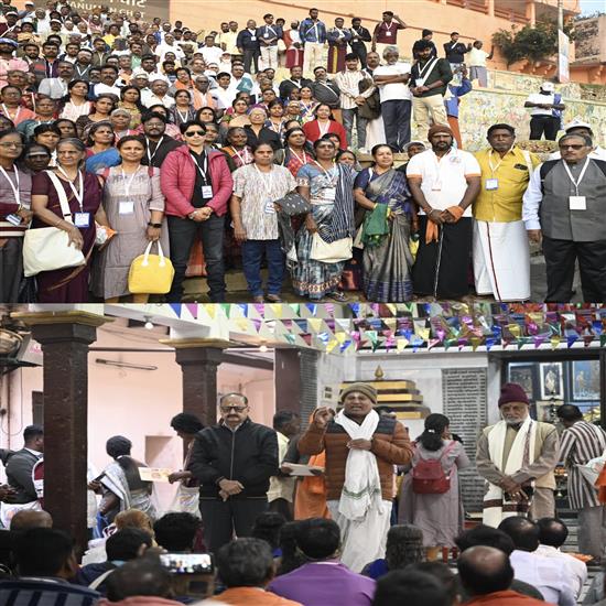 वाराणसी । काशी तमिल संगमम-4.0 में तमिलनाडु से आया कृषि और संबद्ध समूह हनुमान घाट पहुंचा। जहां सभी ने गंगा में स्नान कर मां का पूजा पाठ करते हुए सुख समृद्धि का आशीर्वाद मांगा। वहीं मौजूद आचार्यों ने विस्तार से गंगा के विभिन्न घाटों के इतिहास को बताया। गंगा स्नान के बाद समूह ने घाट पर स्थित प्राचीन मंदिरों में दर्शन-पूजन किया। सभी लोगों को मंदिरों के इतिहास दिव्यता,भव्यता और इतिहास के बारे में जानकारी दी गई।